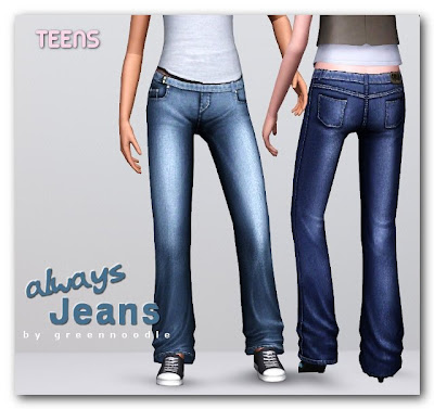 These jeans look great but have a problem ingame, a horrible seam on the waist, like broken skin. (Broken shoes can do that too; it comes from the mesh I think).